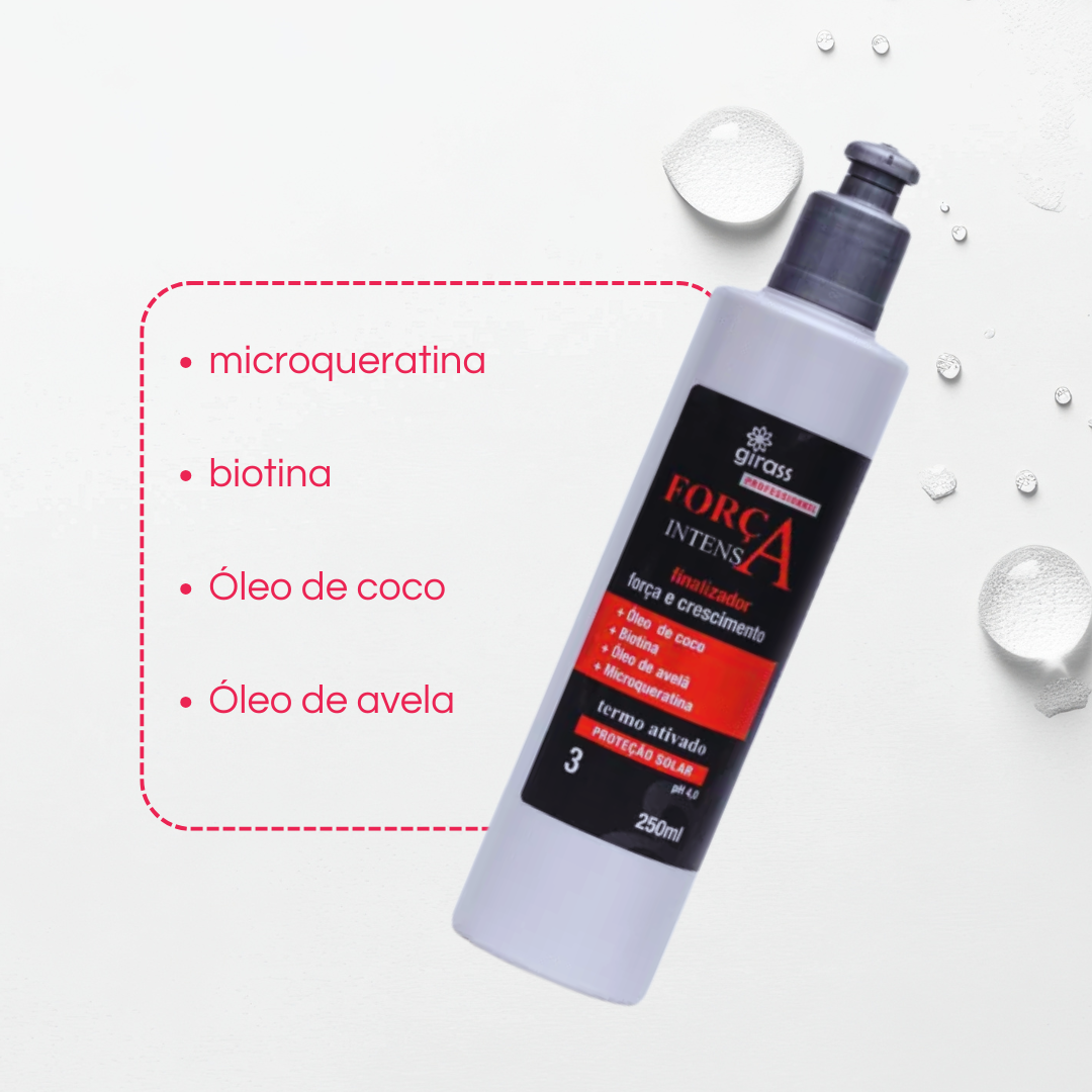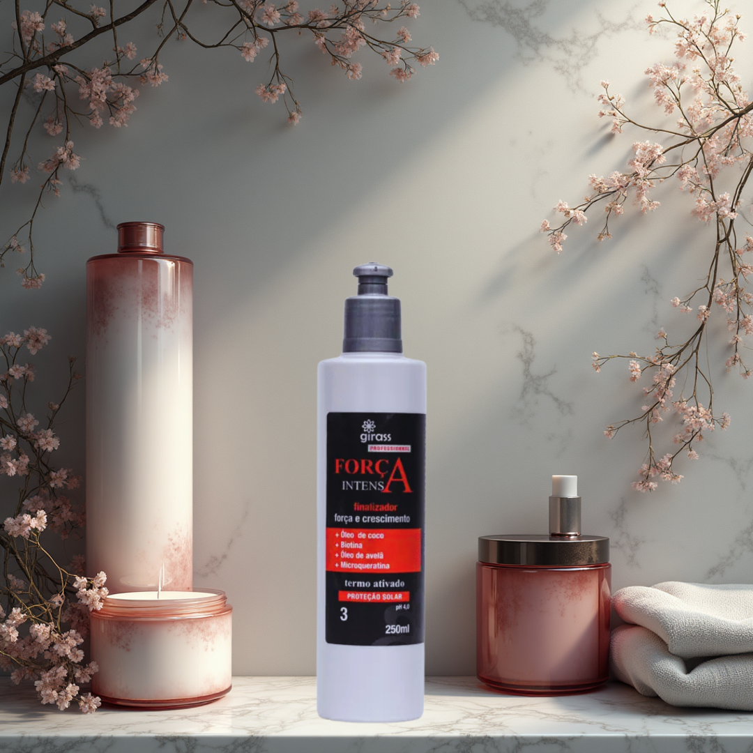 O Finalizador fortificante da Girass faz isso pra você, com óleo de argan, mantém a definição e protege contra a umidade, mais babosa, que cria um filme flexível nos fios, e a queratina, que repara sem pesar.