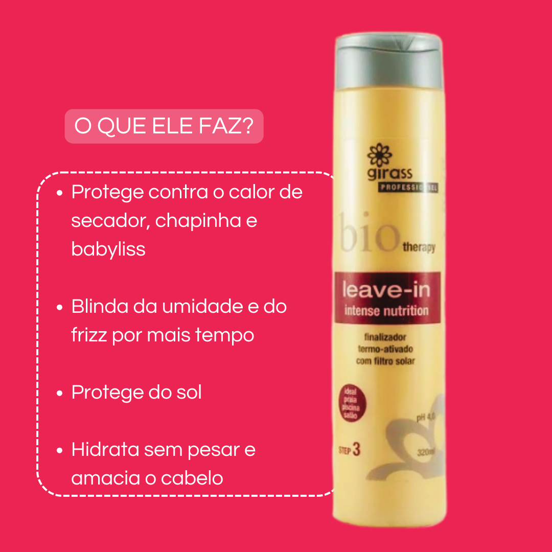 A fórmula do Leave-in Girass Pós Quimica possui ingredientes de alta performance como a Queratina Hidroveg, um ativo vegetal que traz reposição de queratina nos fios. A Queratina ajuda a