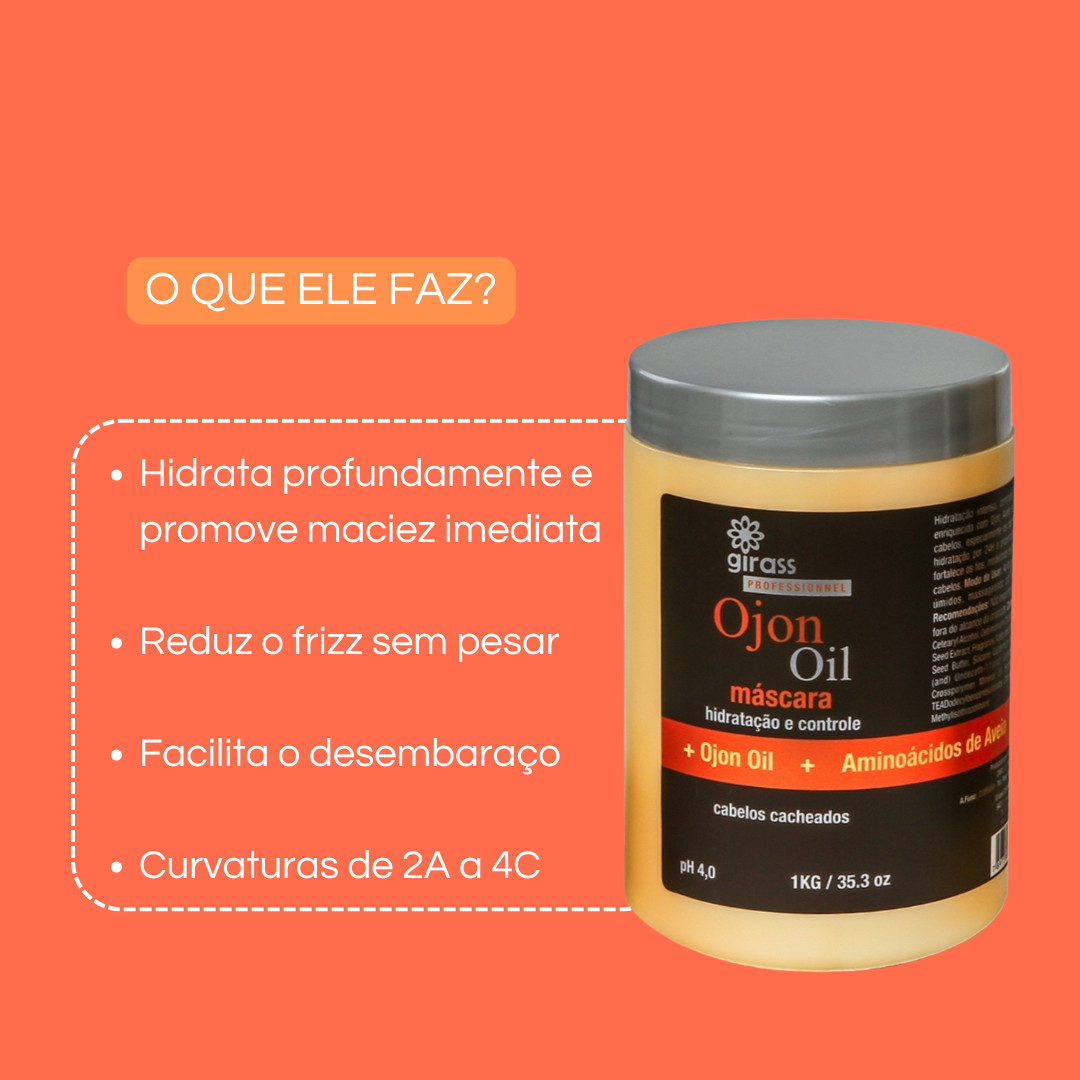 A Máscara Cachos da Girass, devolve vida e movimento sem pesar. Sua fórmula une extrato de aveia para equilibrar e dar brilho, manteiga de cacau e óleo de ojon para nutrir e hidratar e colágeno para selar o frizz, e manter a definição.