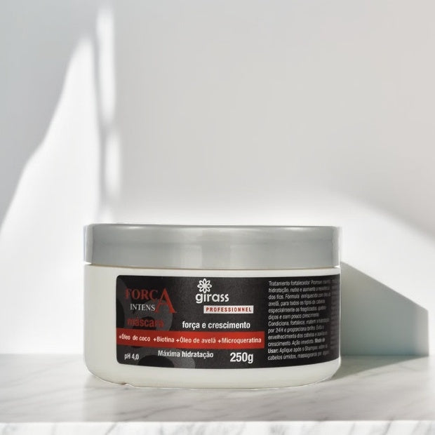 A Mascara Girass Fortalecimento Capilar sela as cutículas e promove desembaraço imediato, fortalece e deixa cabelos instantaneamente mais macios.